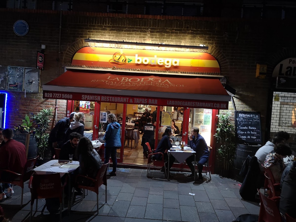 La Bodega, located at 78 Tavistock Rd, London W11 1AN, offers a vibrant Spanish dining experience that's perfect for those craving authentic tapas in a cozy atmosphere. With a menu full of traditional dishes and an impressive drink selection, it’s an ideal spot for everything from a casual breakfast to a lively dinner.
